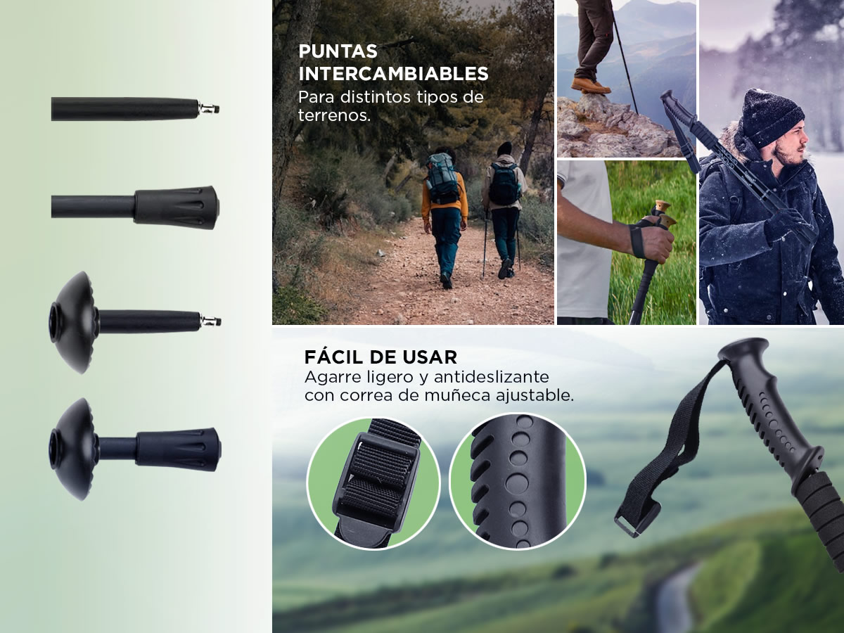 Fácil de usar: para principiantes y excursionistas. Lo suficientemente fuerte como para soportar la presión y el impacto de cualquier terreno