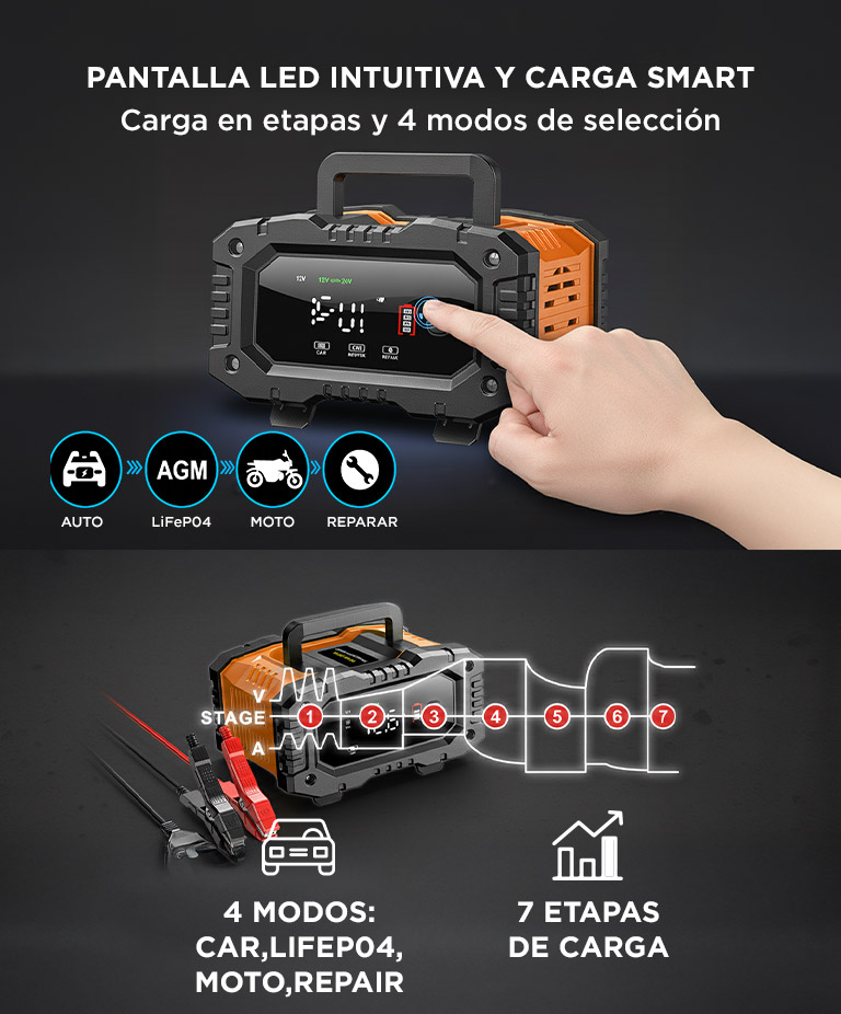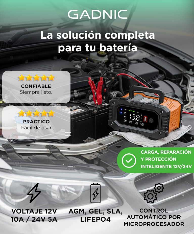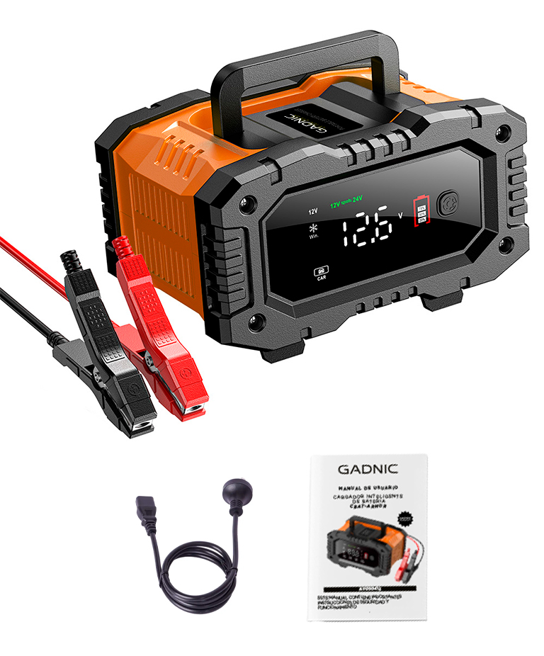 Cargador Inteligente De Batería De Autos y Motos Gadnic CBAT-Armor 12V 24V Mantenedor Portátil Apto Gel Acido LiFePo4