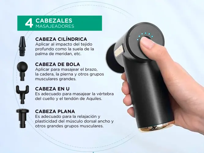 Esta Pistola Masajeadora es ideal para la recuperación muscular luego de hacer deporte, rehabilitación después de una lesión deportiva o dolores musculares