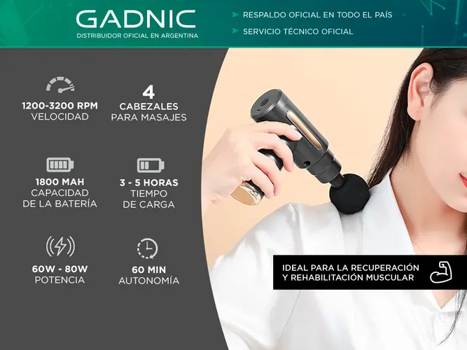 Pistola Masajeadora Gadnic Promassage Inalámbrica Cabezal Intercambiable