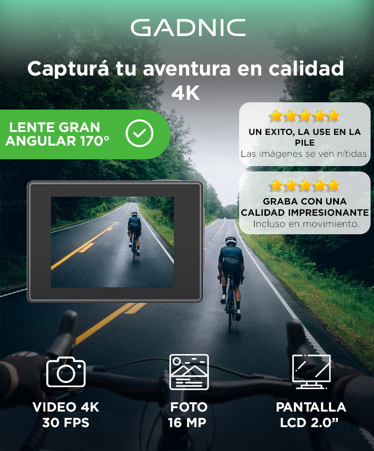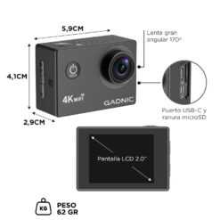 Acerca de Cámara Deportiva Gadnic 4K WiFi Pantalla LCD 2 Pulgadas Gran Angular 170 16 MP Recargable 900 mAh