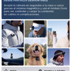 Usá la cámara directamente sobre ropa, casco o accesorios gracias a su sistema de anclaje magnético. Ligera, compacta y lista para grabar desde tu punto de vista sin esfuerzo.