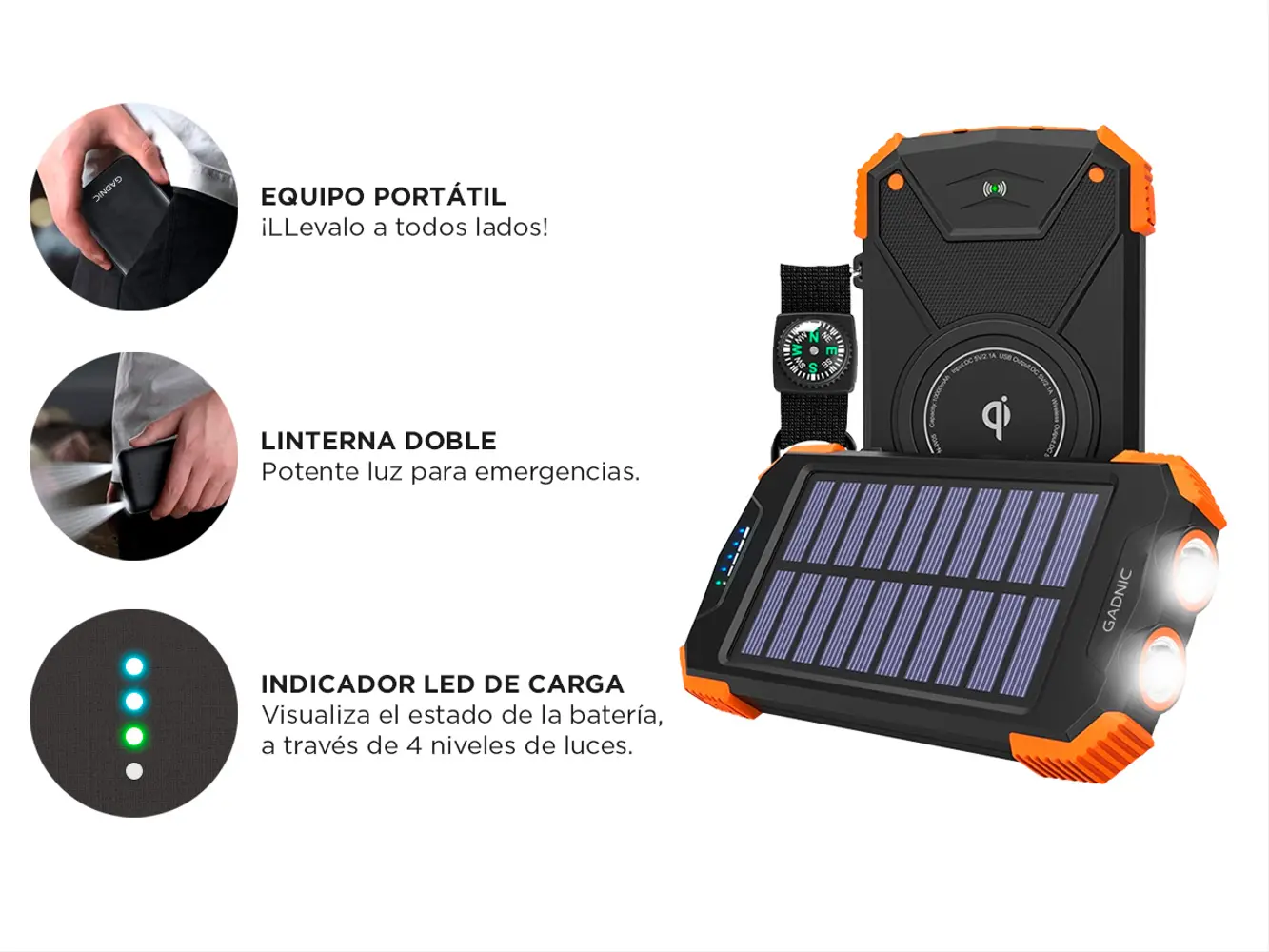 Cargador de Batería Solar Gadnic Power Bank Inalambrico