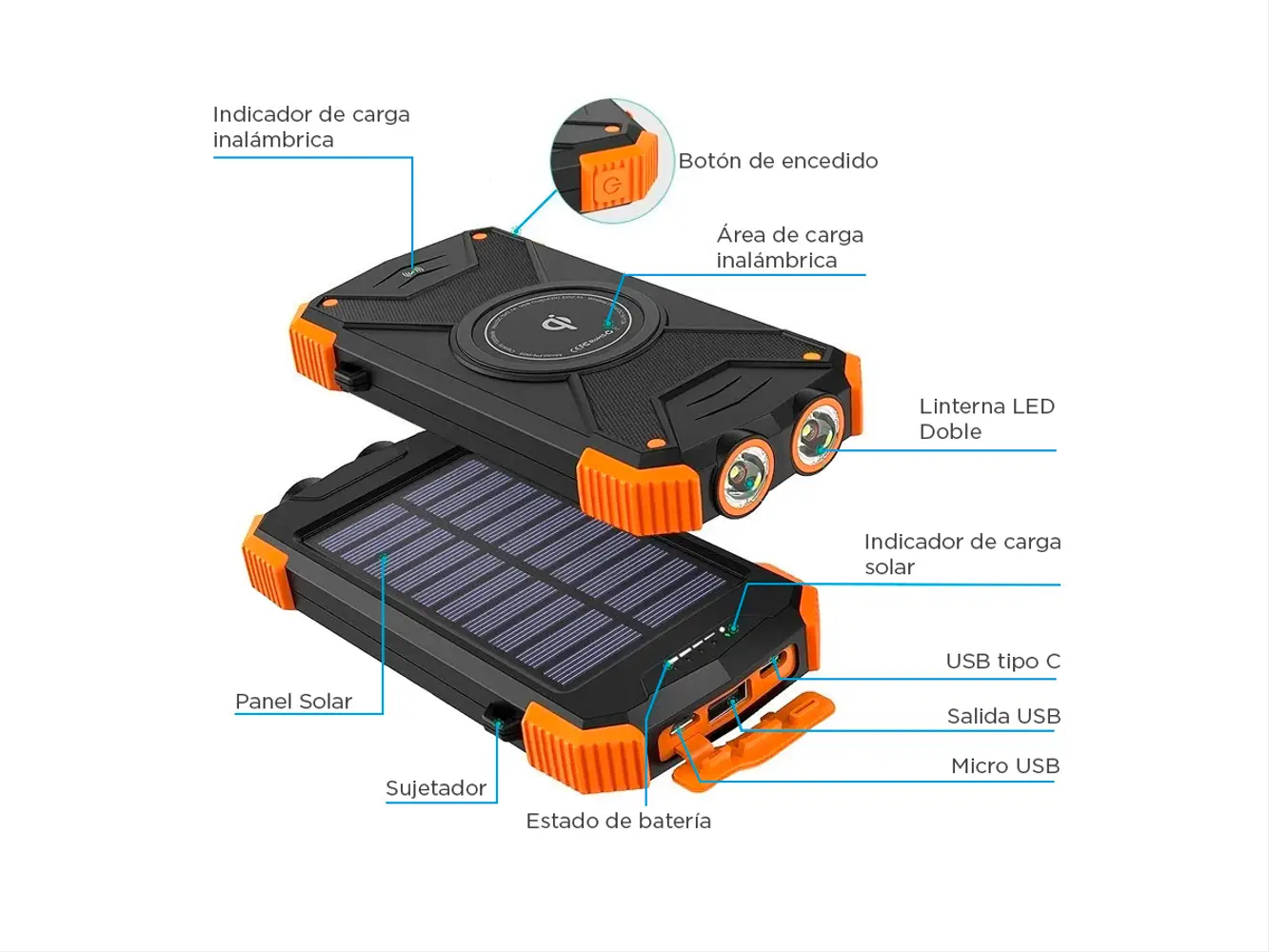 El nuevo cargador de batería por energía solar es ideal estar siempre listos, incluso en días y noches al aire libre o de aventura. No importa donde estés, este power bank tomará energía del sol para cargar tus artefactos en casos de emergencia
