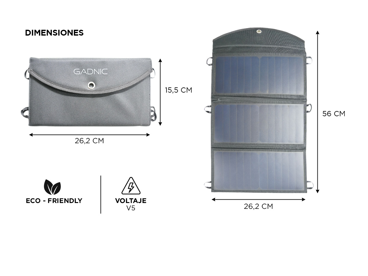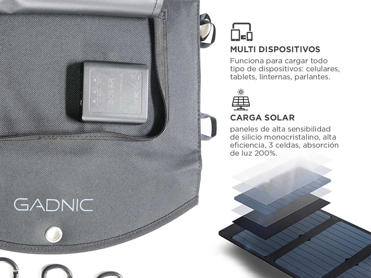 Acerca de Panel Solar Plegable Portátil Gadnic Cargador USB 30w 3 Paneles
