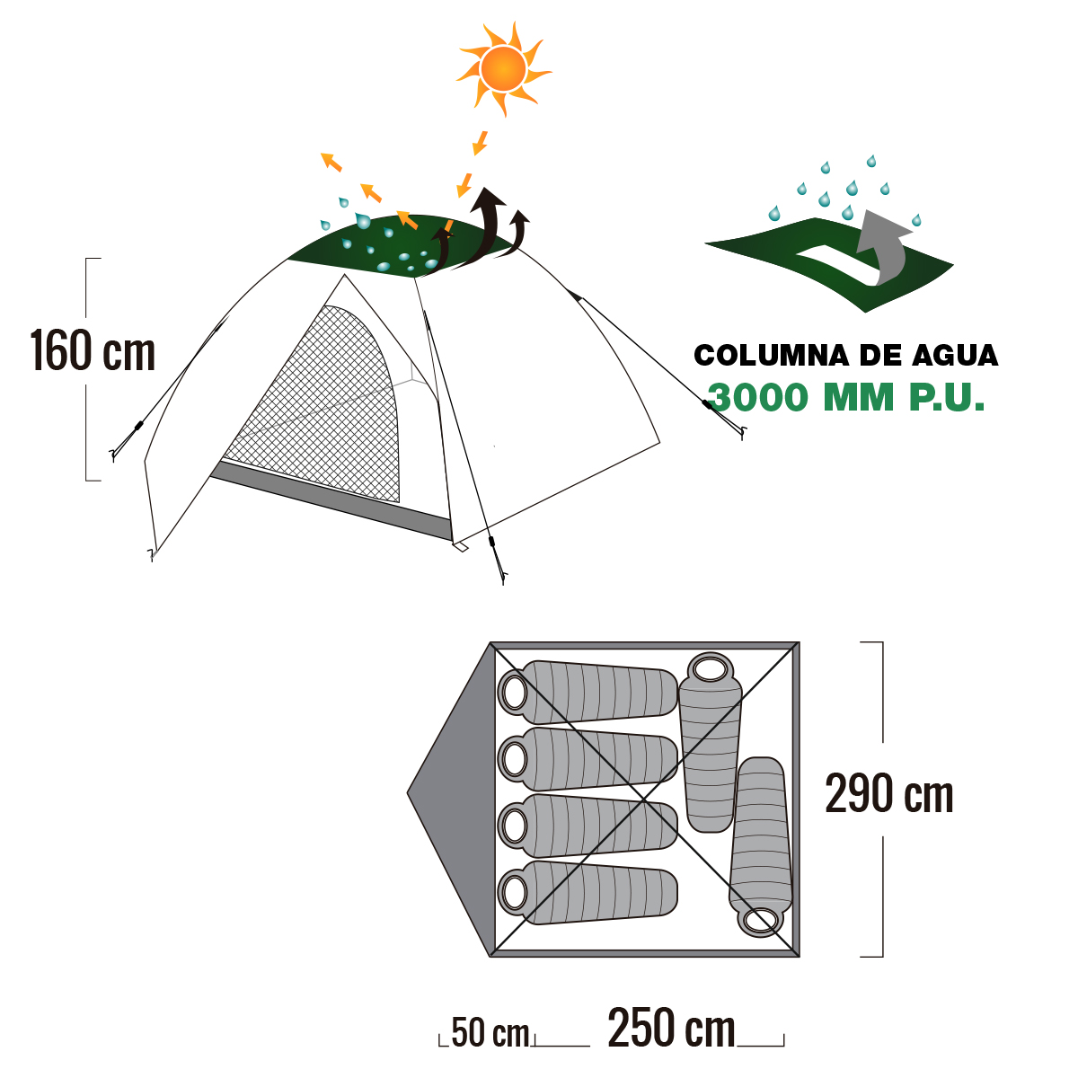 Carpas Familiar 6 personas WATERDOG