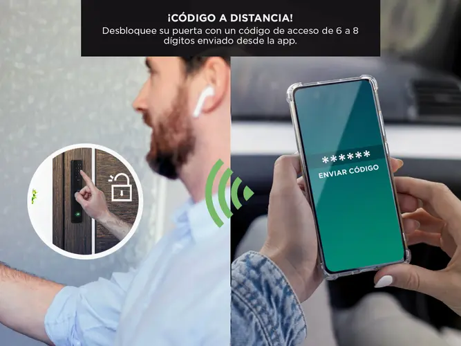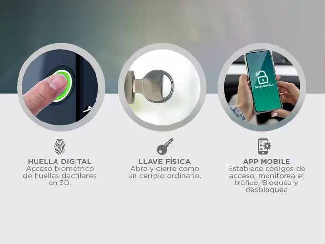 Utilice la aplicación en su teléfono para codificar sus huellas dactilares, establecer códigos de acceso, monitorear el tráfico y bloquear/desbloquear. Todo se puede hacer a través de la aplicación.