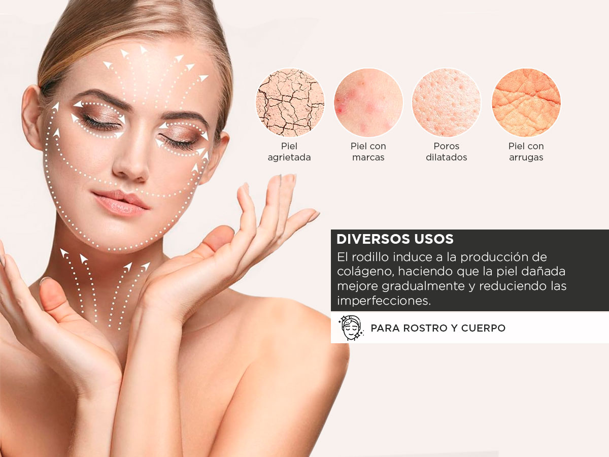 Solución Integral: Ideal para tratar cicatrices, arrugas, líneas finas y cuidar tanto de tu piel como de tu cabello. Este rodillo es tu aliado para lograr una piel rejuvenecida y un cabello radiante.