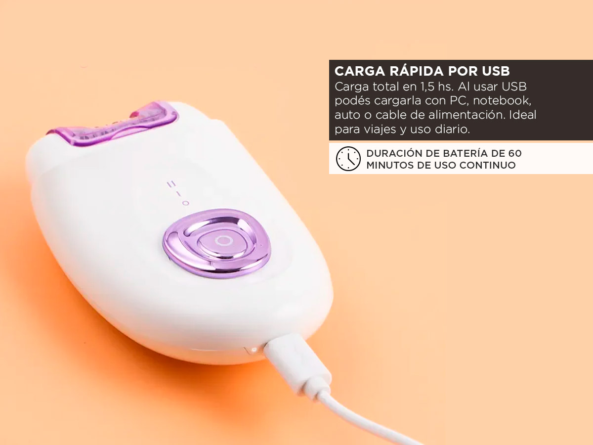 Carga Rápida: Con un adaptador de 5V 1A, tu depiladora estará lista en poco tiempo para una sesión de depilación sin complicaciones.