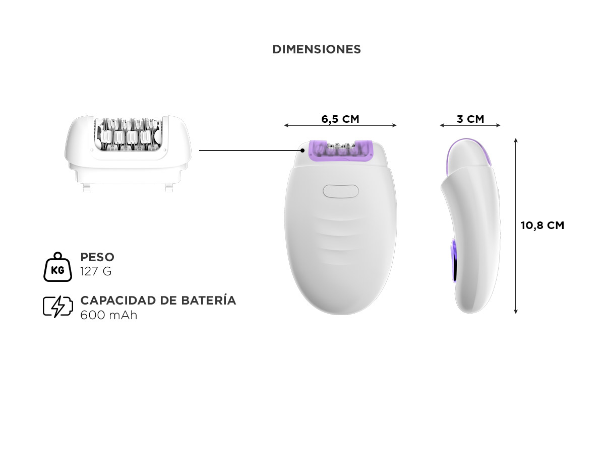 Batería de Litio de 3.7V 600mAh: Disfruta de una potencia duradera que te permite depilarte con confianza y sin interrupciones.