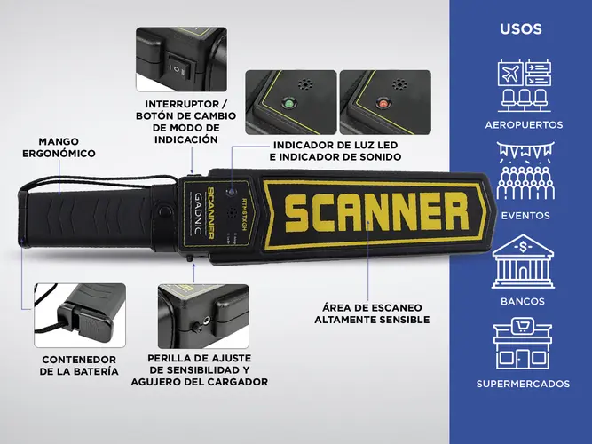 Detector de metales Gadnic De Mano Seguridad Portátil