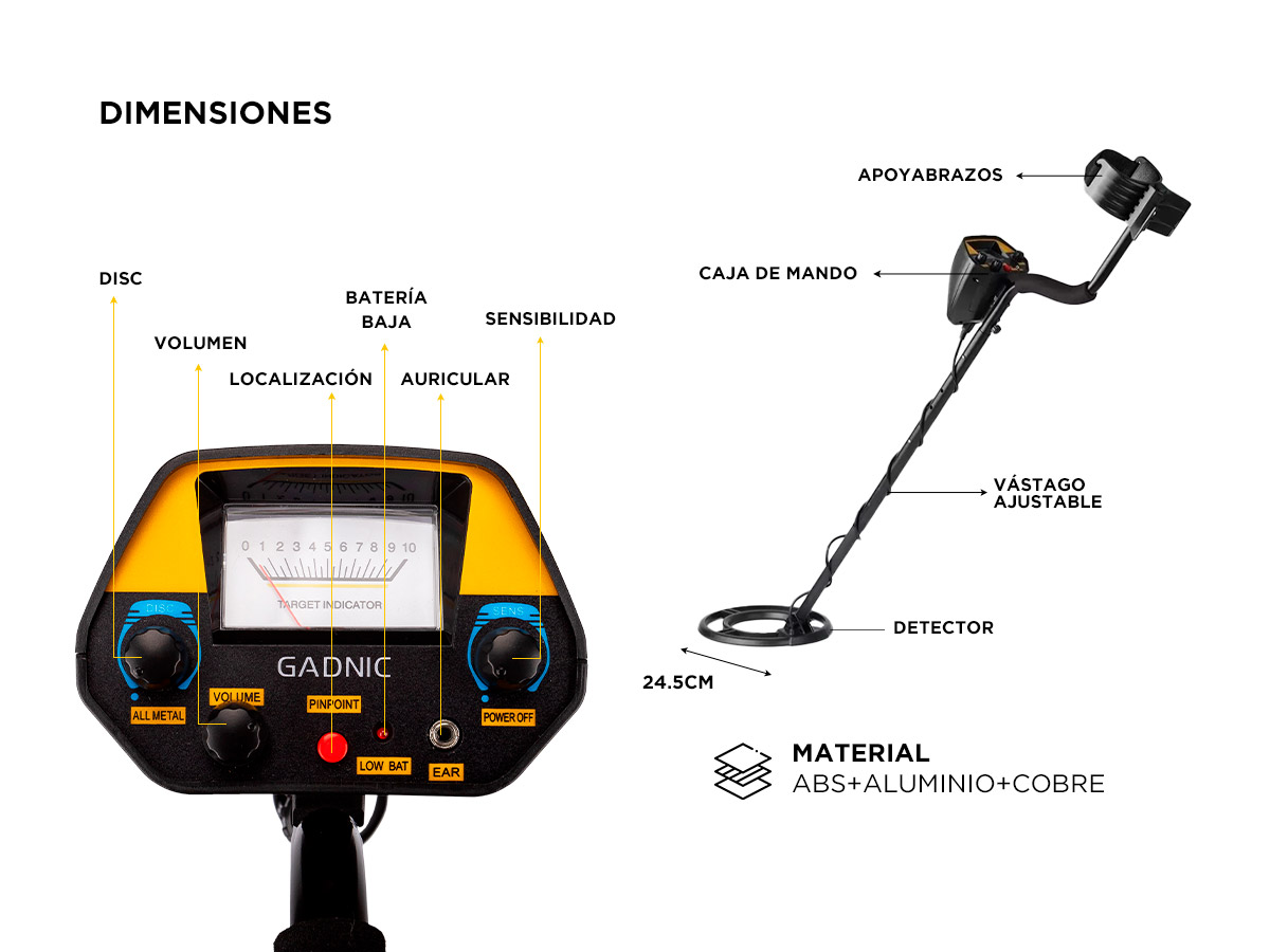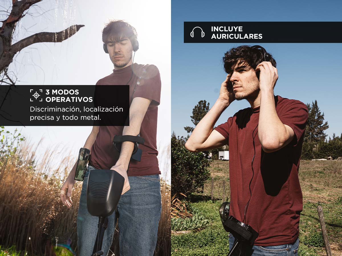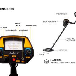 - Detectar objetos: metal, monedas, reliquias, joyas, oro, plata