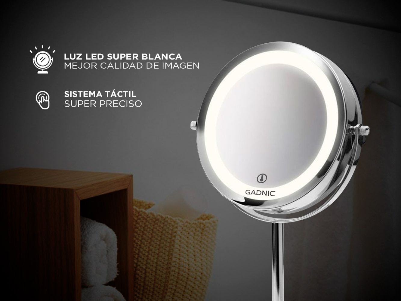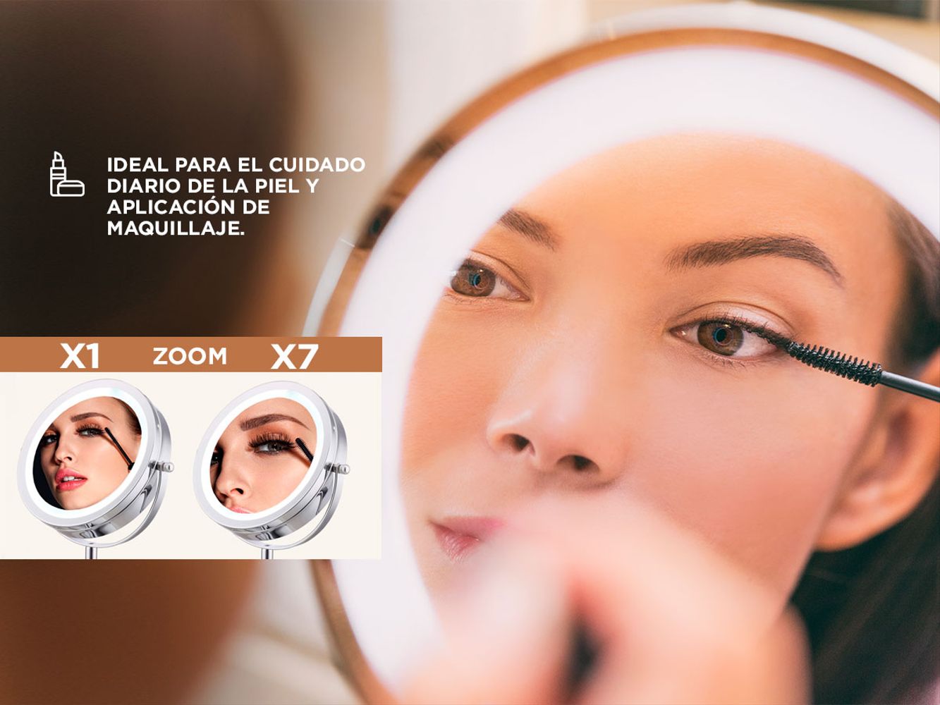 Dispone de una superficie de 7 aumentos. La iluminación integrada sirve para una mejor precisión al momento del maquillaje.