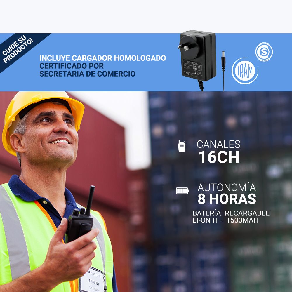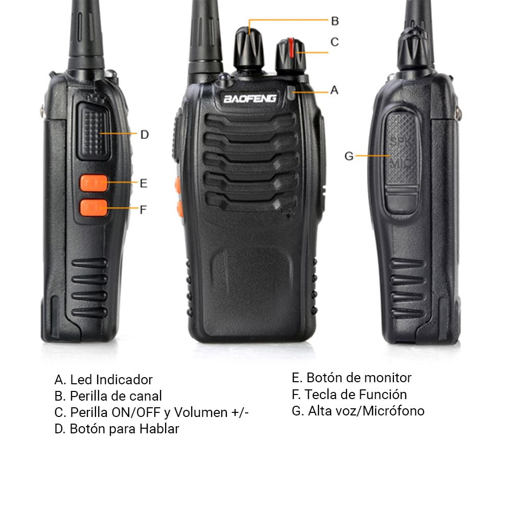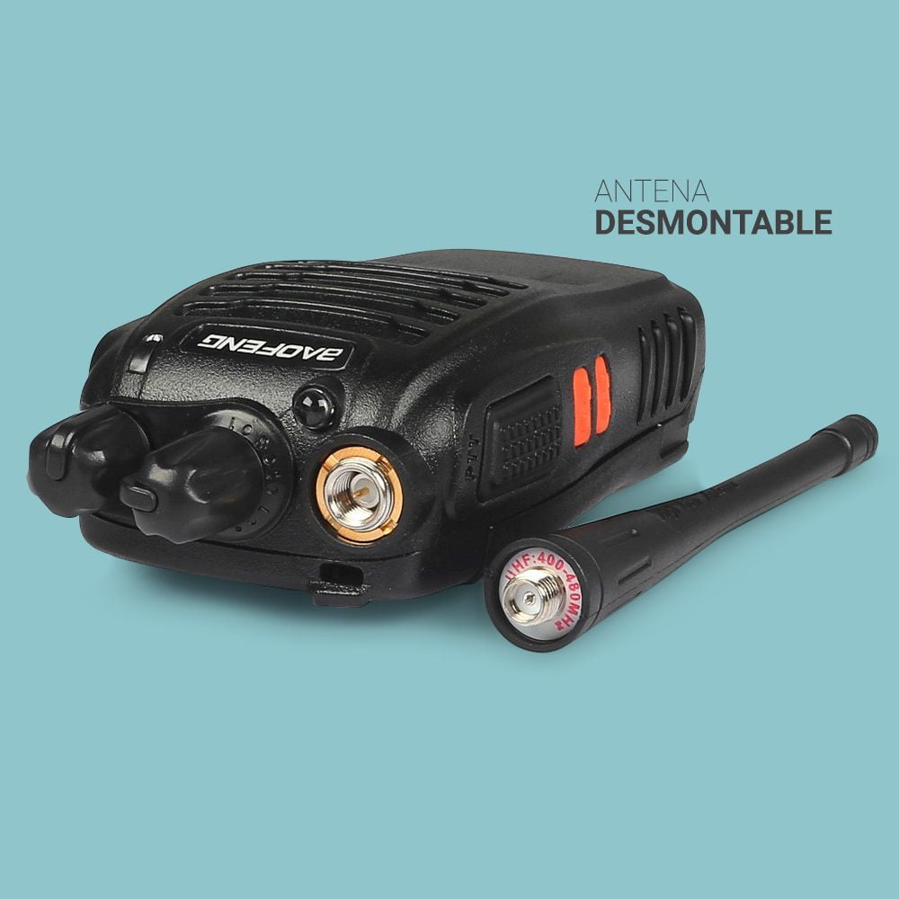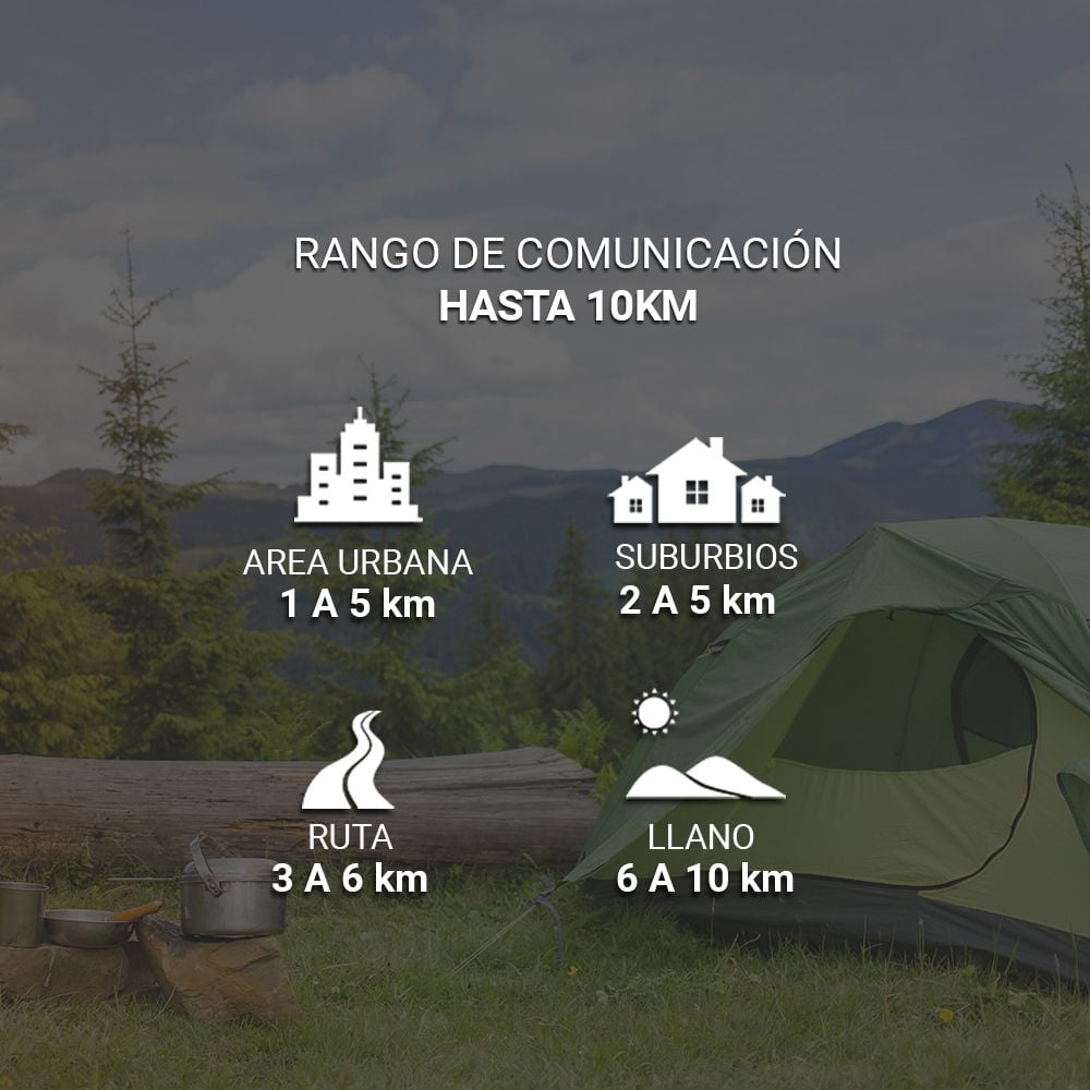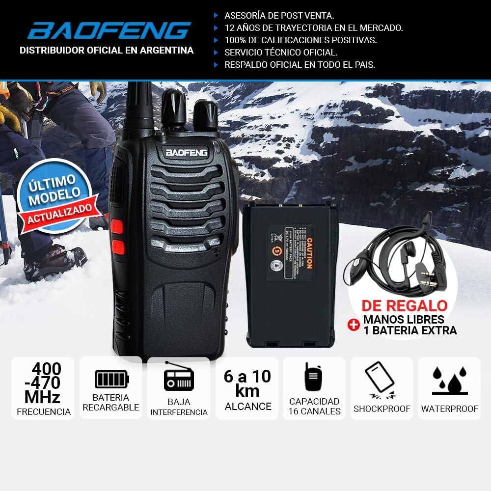 El Handy más confiable, estable y más vendido del mercado con 2 Baterías Incluidas, Auricular Manos Libres y Base de Carga USB. Alcance de 3 a 5km en ciudad o 5 a 10km al aire libre. Ideal para caza, pesca, montañismo, vigilancia del medio ambiente, radioaficionados, comunicación entre dos casas o entre vehículos, seguridad, almacenes, construcción, espionaje, aire libre, paint ball, airsoft, deportes y miles de situaciones…
