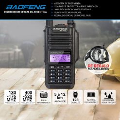 - Rango de frecuencia (UHF Y VHF) VHF 130-176MHz y UHF 400-520MHz