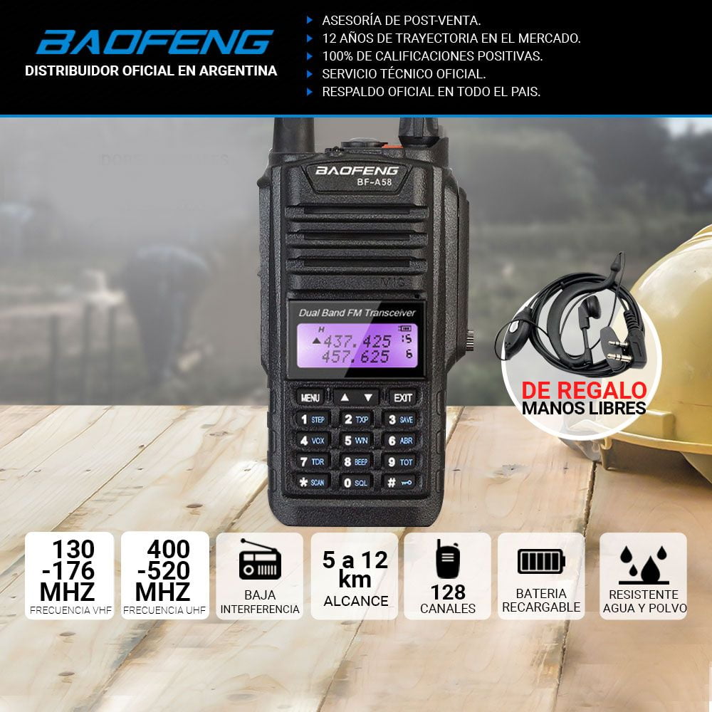 Handy Baofeng A-58 Bi-Banda 5w 128CH Hasta 12km 2 Baterías y Manos Libres