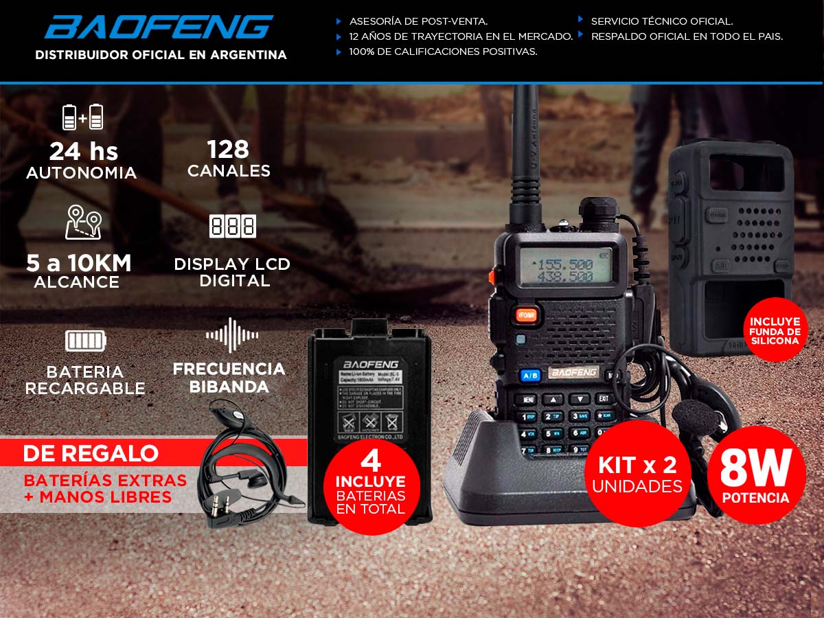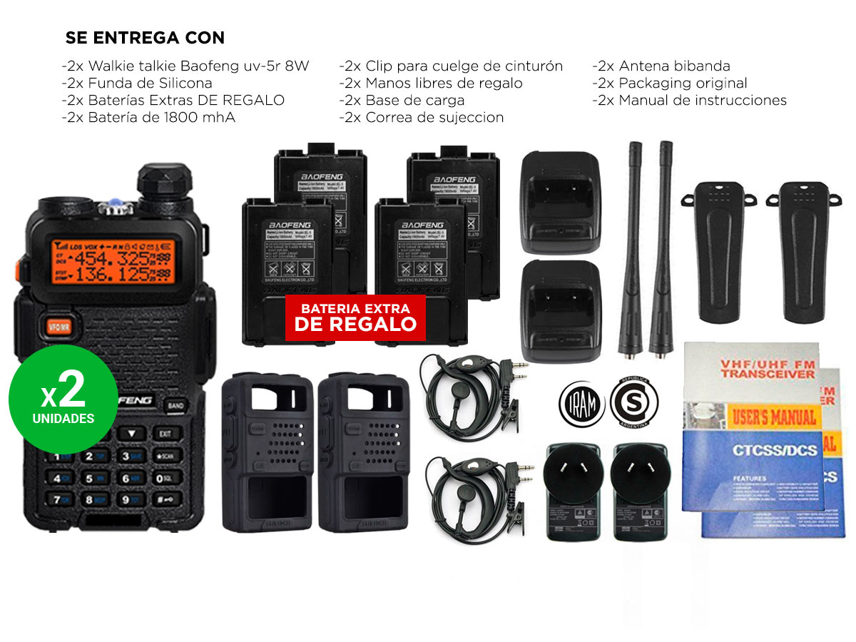 Acerca de Handy Baofeng UV-5R Kit x2 Bi-Banda 8w c/ Funda Hasta 12km + 4 Baterías y 2 Manos Libres