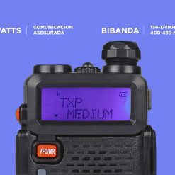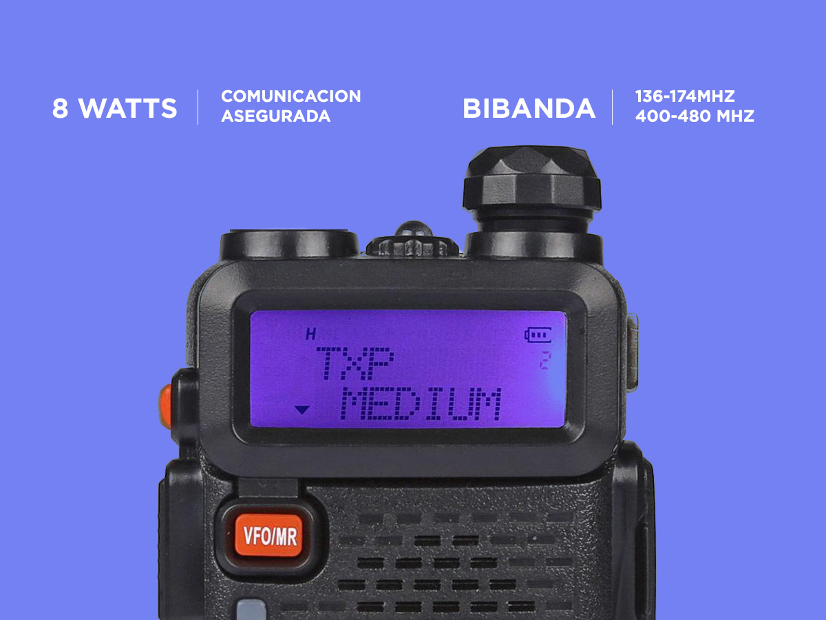 El handy BaoFeng UV5R 8 Watt es un walkie-talkie de mano compacto que proporciona versatilidad y un amplio espectro de frecuencias de funcionamiento.