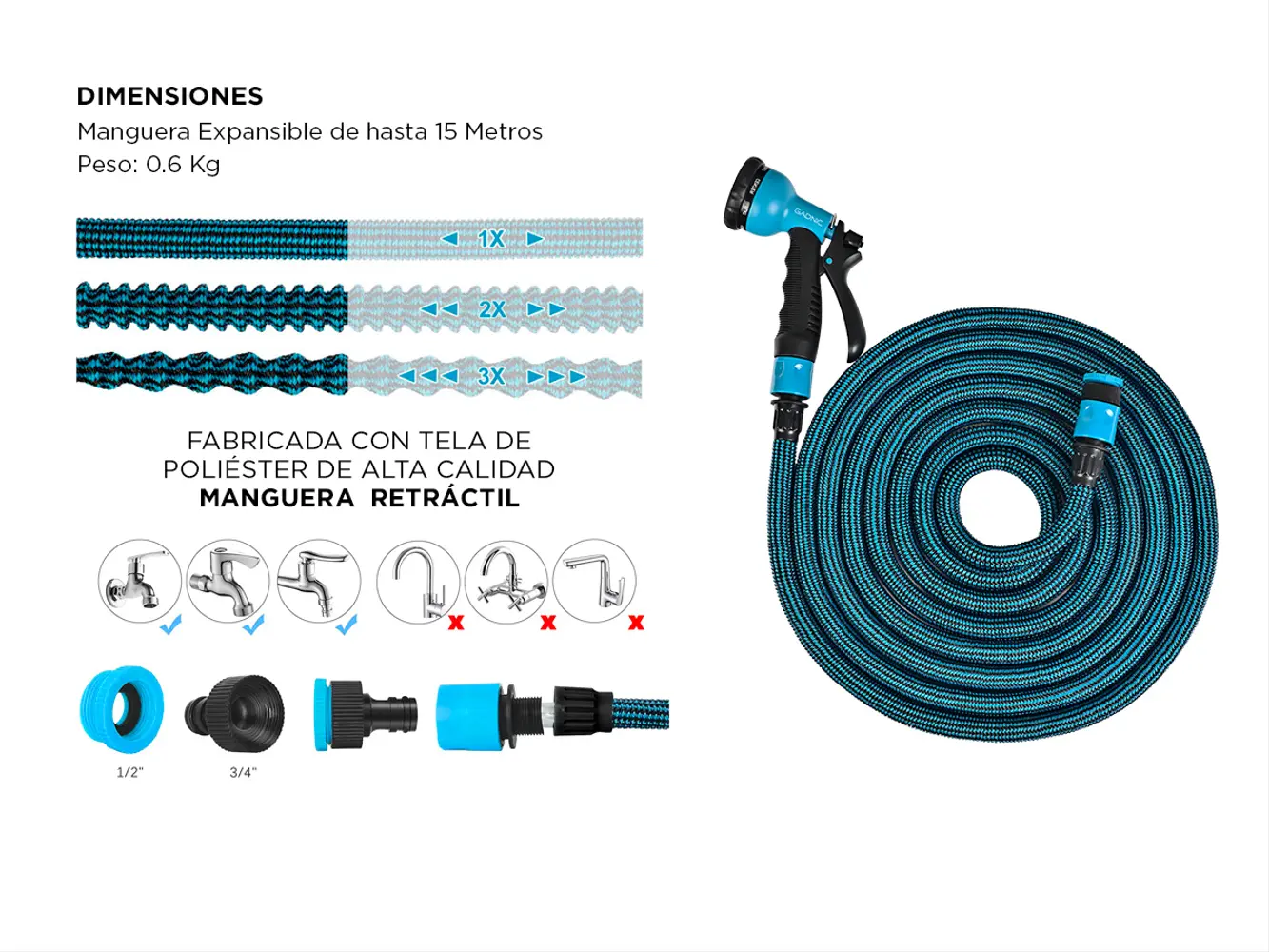 - Largo de Manguera: Hasta 15 Metros
