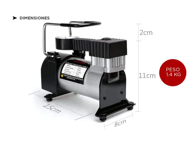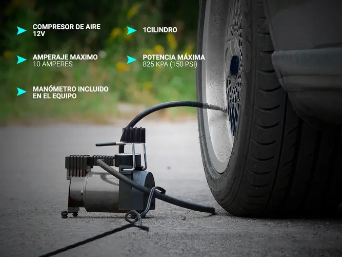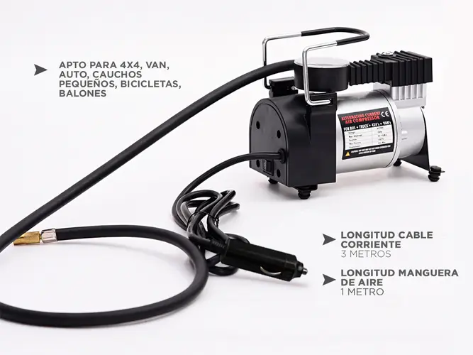 El AV000011 es el modelo más práctico y eficiente en la categoría de compresores de aire. Ideales para usarse en bus, camión, 4×4, van, auto, cauchos pequeños, bicicletas y hasta pelotas. ¡Es el aliado ideal para siempre tener en tu vehículo!