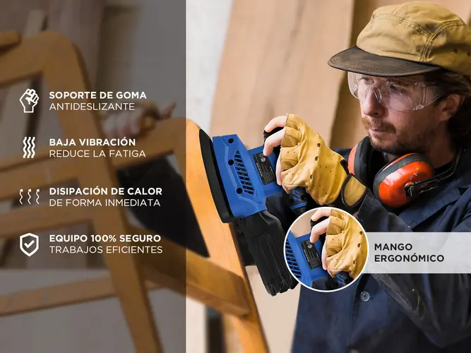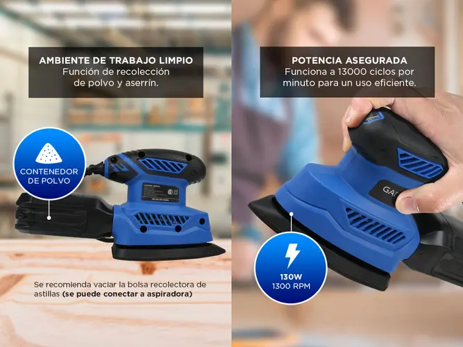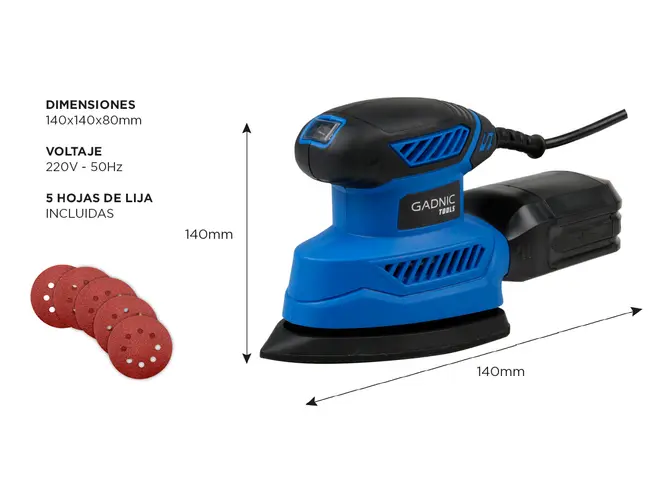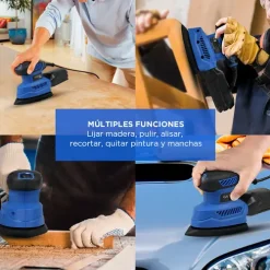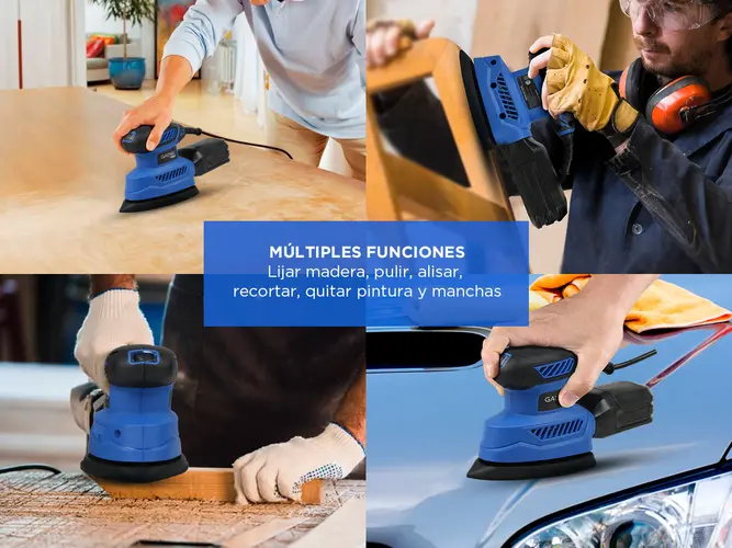 - Funciones: Lijar madera, decoración del hogar, bricolaje, pulir, alisar, recortar, quitar pintura, manchas e imperfecciones.
