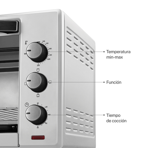 - 3 modos de cocción: Elige entre Hornear, Asar y Tostar para una experiencia culinaria completa.