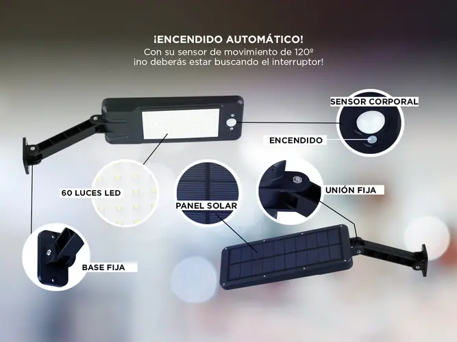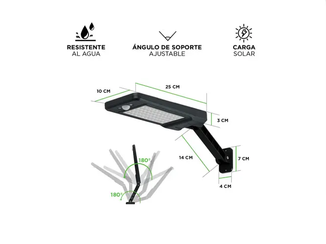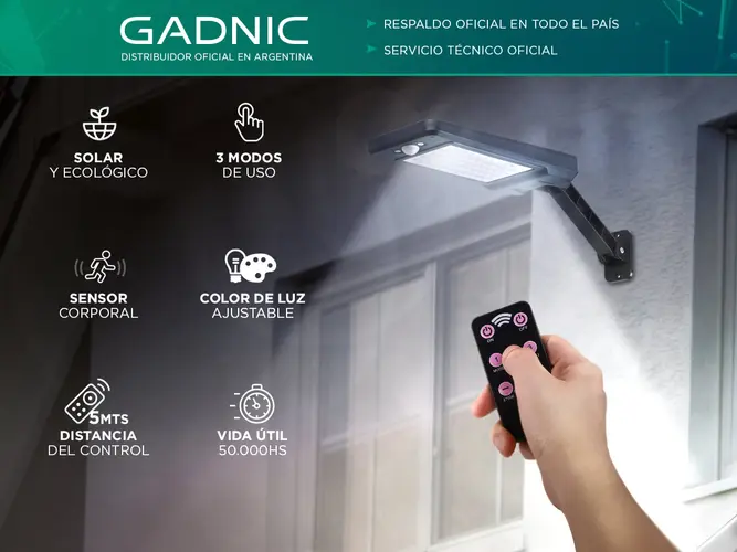 Reflector Led Solar Gadnic de Pared Con Sensor
