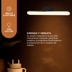 Selecciona la temperatura de color que se ajuste a tus preferencias con opciones de luz blanca, luz cálida y luz mixta. Su diseño magnético te permite colocarla en cualquier superficie metálica, brindándote flexibilidad en la disposición de tu espacio de trabajo.