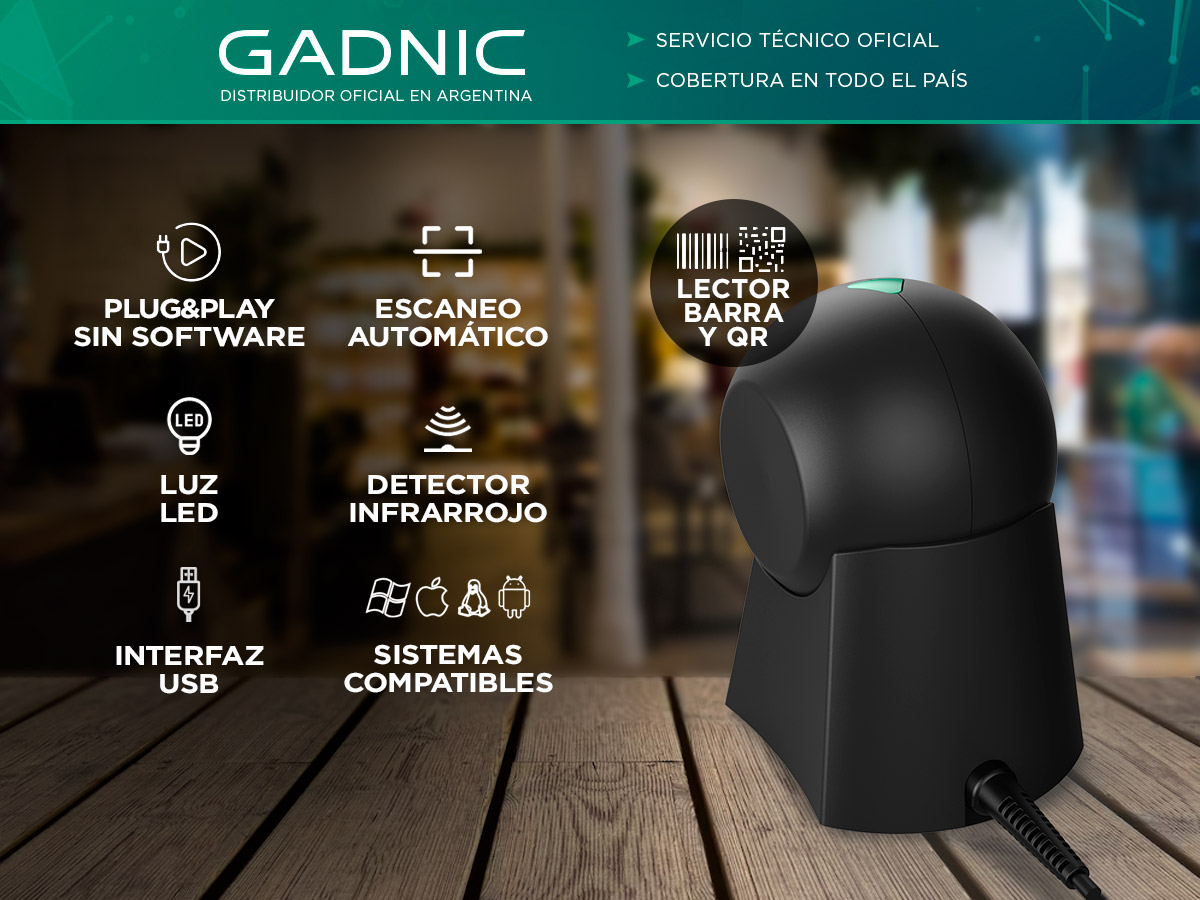 ¡Lector de Código de Barras Omnidireccional Gadnic con USB!