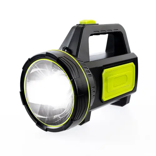 Esta luz de búsqueda de linterna led spot también tiene una linterna de inundación lateral extra brillante, muy brillante para lámpara de emergencia para el hogar, luz de trabajo, linterna de camping.