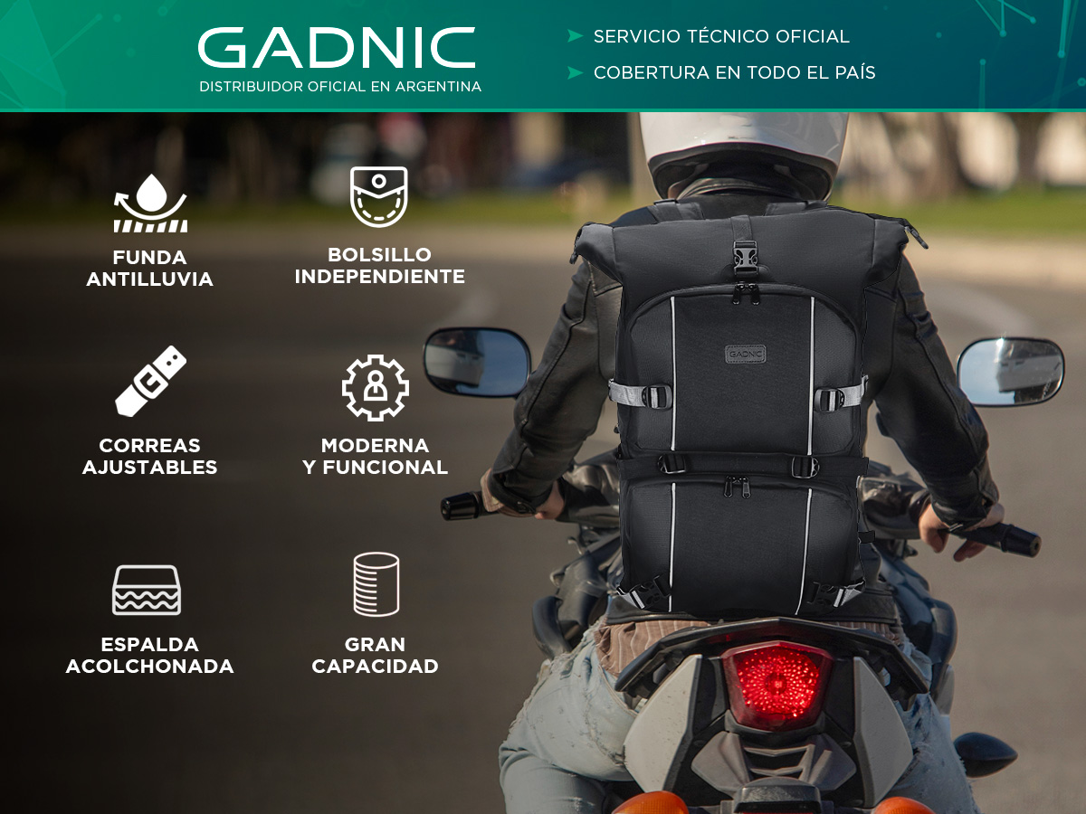 Viajá seguro, seco y con estilo con la Mochila Impermeable para Moto de GADNIC. Diseñada para acompañarte en cada aventura, combina resistencia, capacidad y comodidad en un solo producto.