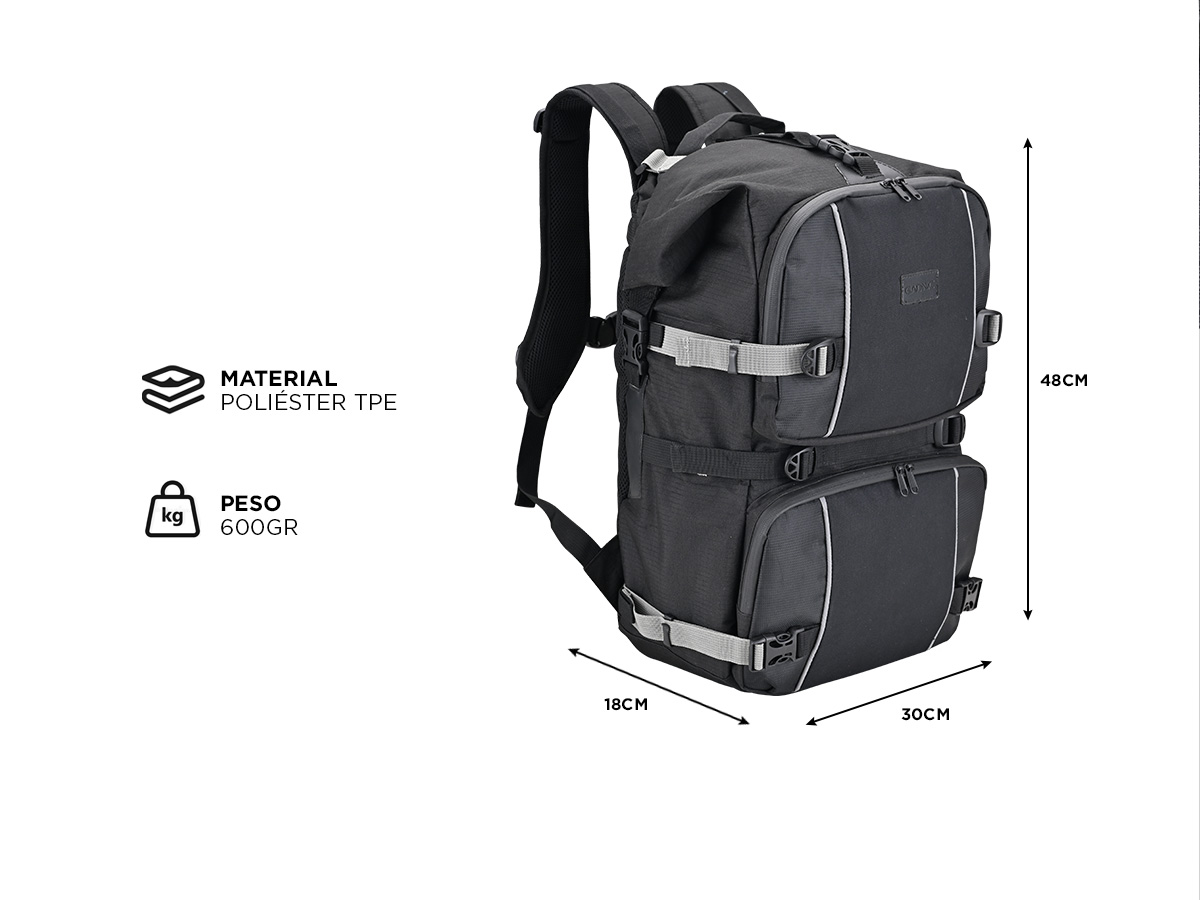 Con correas ajustables, espalda acolchonada y una capacidad de 30 litros, esta mochila se adapta a vos y a tus recorridos diarios o escapadas cortas. Su diseño moderno suma funcionalidad sin perder estilo. Perfecta para motociclistas que buscan practicidad, protección y un look impecable.