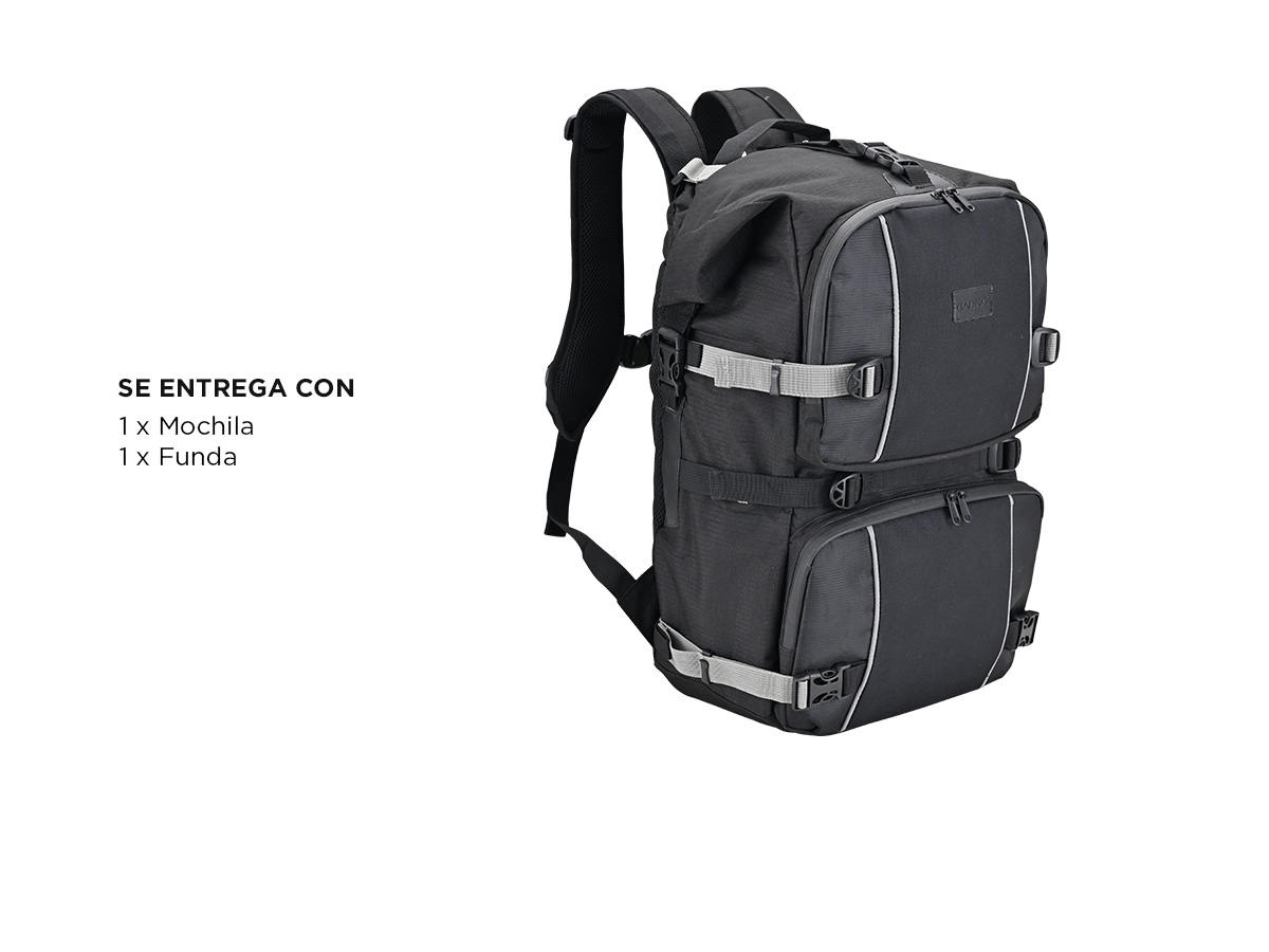 Fabricada en poliéster TPE impermeable, protege tu equipo de la lluvia y la humedad. Además, incluye una funda antilluvia incorporada y un bolsillo impermeable independiente, ideal para guardar documentos, objetos delicados o ropa mojada sin afectar el resto del contenido.