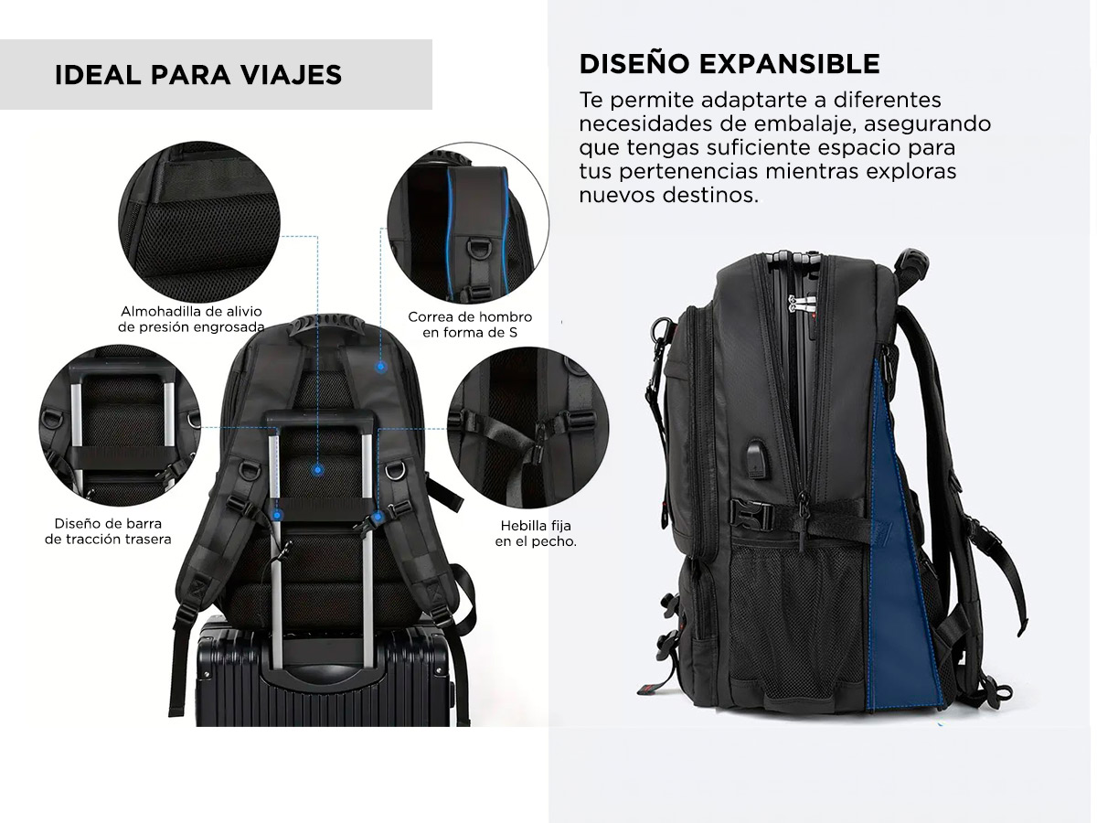 Hace de tus viajes una experiencia más cómoda y organizada con nuestra Mochila.