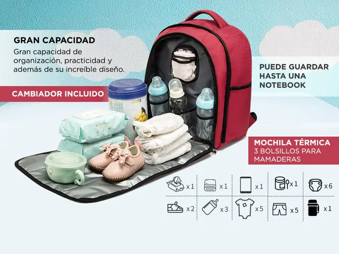 Con 5 bolsillos y una excelente funcionalidad para sostener una Notebook o la mayoría de libros