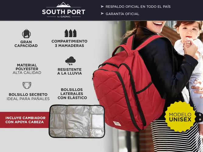 Mochila Bolso Maternal South Port Multiples Compartimentos Cambiador