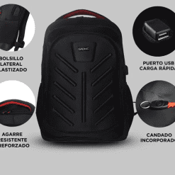 Ésta mochila urbana resistente al agua de la mas alta calidad, cierres completamente duraderos y un candado que la convierte en unas de las mochilas mas seguras del mercado. La misma cuenta con ganchos de sujeción, puerto USB para recargar tu SmartPhone en cualquier lugar.
