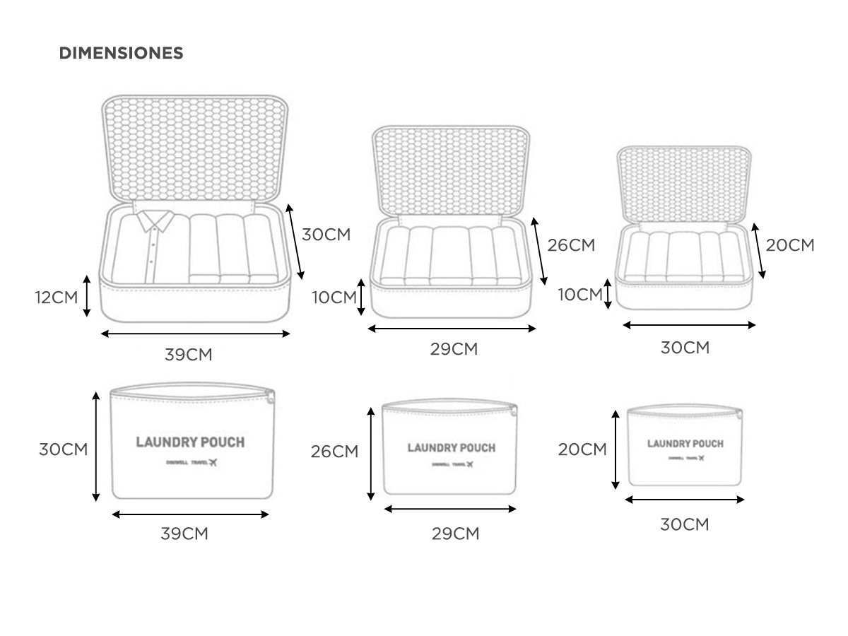 Este conjunto de 6 organizadores de diferentes tamaños está hecho de un material impermeable y resistente que protegerá tus pertenencias de la humedad, la suciedad y los daños durante tus viajes. Con su diseño plegable y ligero, podrás guardarlos fácilmente en tu maleta o mochila sin ocupar demasiado espacio.