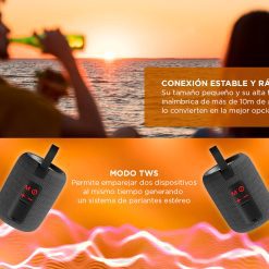 El PocketBeats está diseñado para proporcionar una experiencia sonora potente y clara, ideal para animar cualquier fiesta. Equipado con el chip Bluetooth y la versión V5.1, ofrece una conexión estable y rápida con un alcance de hasta 10 metros sin barreras.