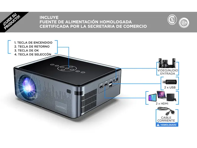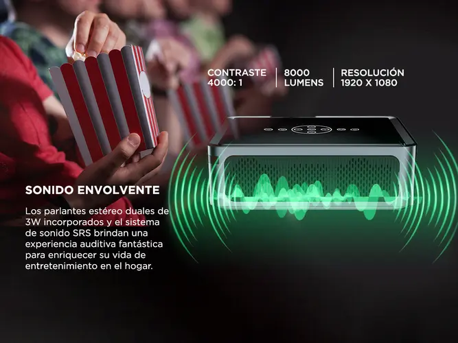 Proyector Gadnic Full HD 1080P Android WiFi Dual Bluetooth 8000 Lumens HDMI USB Dolby Pantalla 120