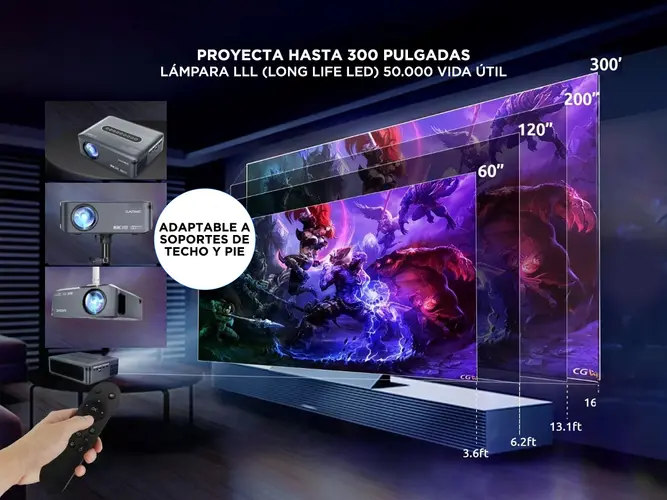 Este proyector de vídeo de alta definición te sumergirá en una experiencia cinematográfica única, ofreciendo una resolución de 1080P y una potente lámpara de 90W que garantiza imágenes nítidas y vívidas en una pantalla que abarca desde 45 hasta 300 pulgadas.