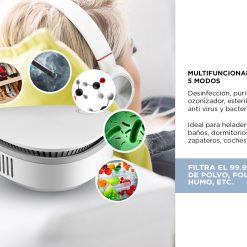 - Funciones: desinfección, purificador, ozonizador, esterilizador, anti virus y bacterias