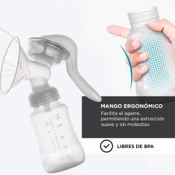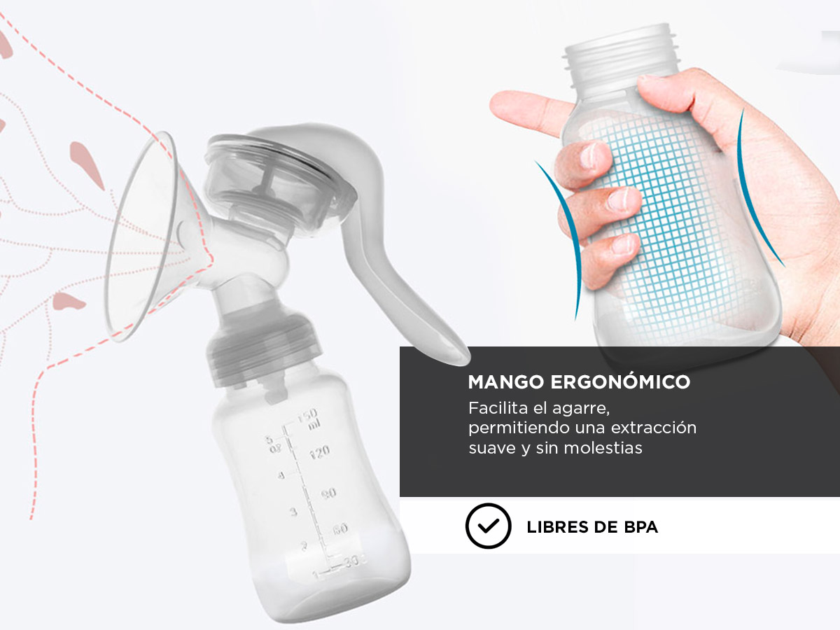 Diseño Ergonómico y Seguro: Mango ergonómico que facilita el agarre, permitiendo una extracción suave y sin molestias. Fabricado con materiales libres de BPA, garantizando la seguridad para el bebé y la mamá.