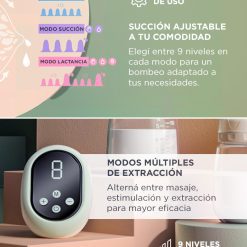 - Modos: Estimulación (9 niveles), Lactancia (9 niveles), Masaje (9 niveles)