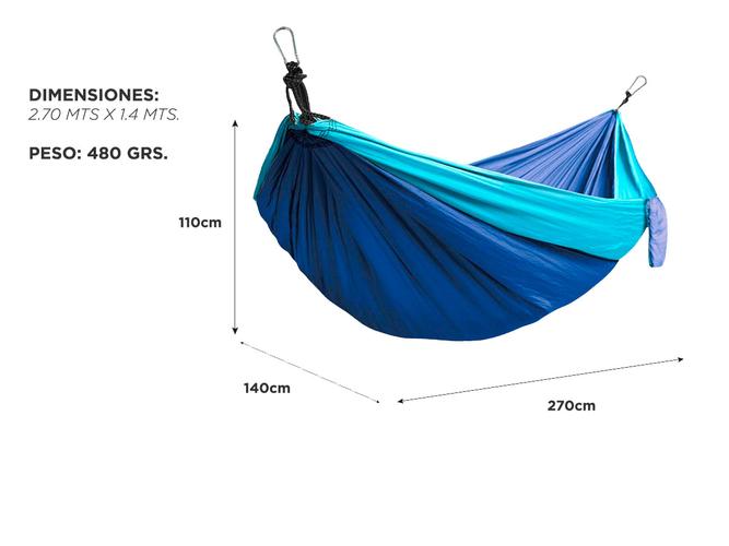 Material: Nylon 210T. Tela paracaídas super resistente y ligera hasta 200kg