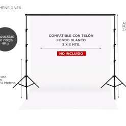 Sistema de soporte de fondos de 3 Metros de ancho máximo x 2,60 Metros de altura máxima ideal para un estudio de fotografía o estudio hogareño.
