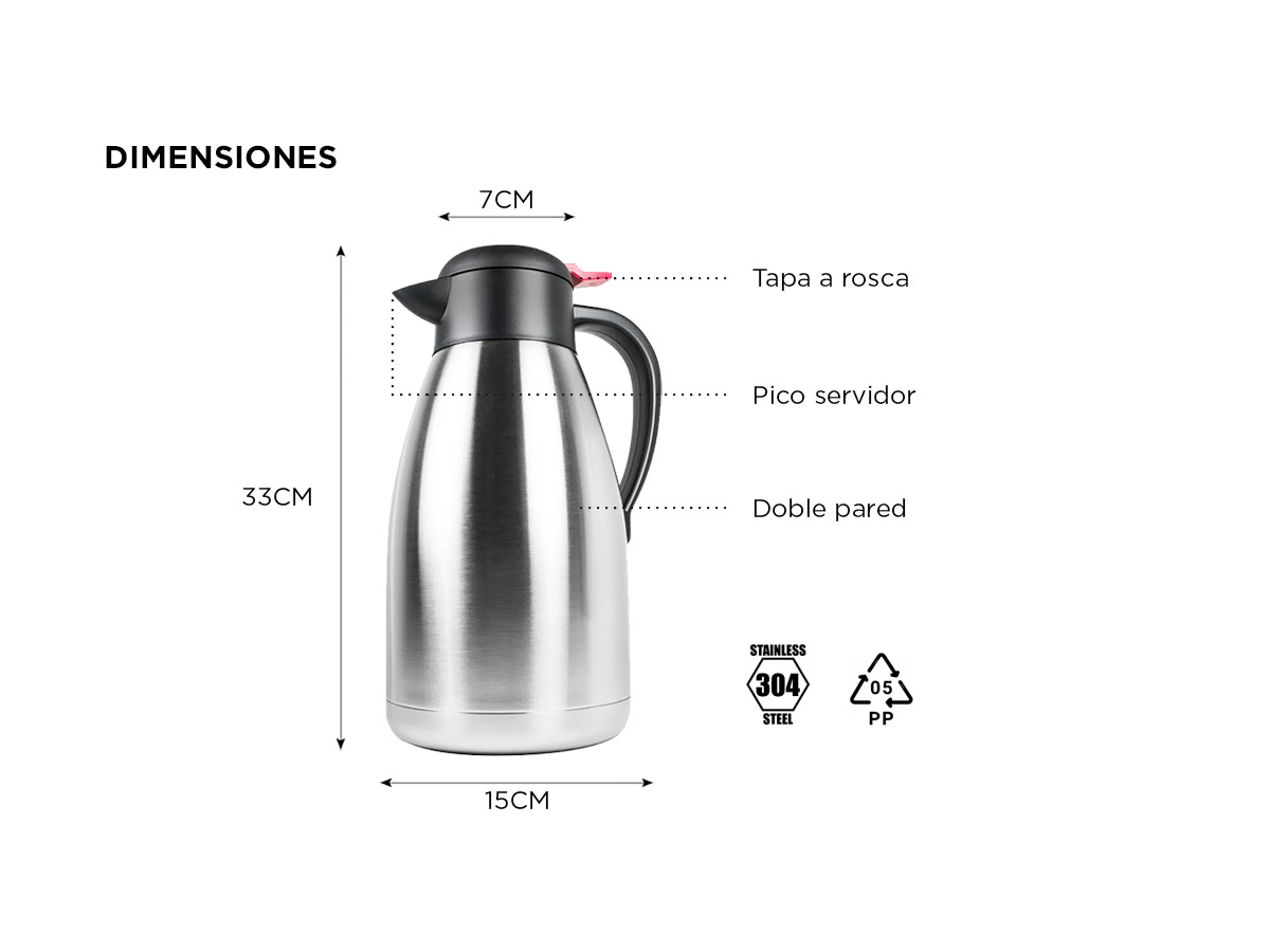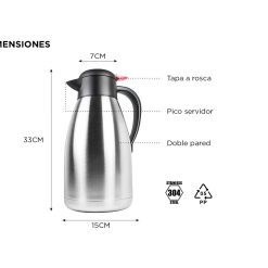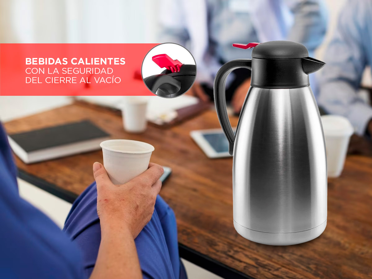 Con una capacidad de 2 litros, esta jarra térmica es ideal para servir bebidas en eventos, reuniones familiares o para uso diario en el hogar. Su diseño moderno y elegante la hace perfecta para cualquier ocasión.