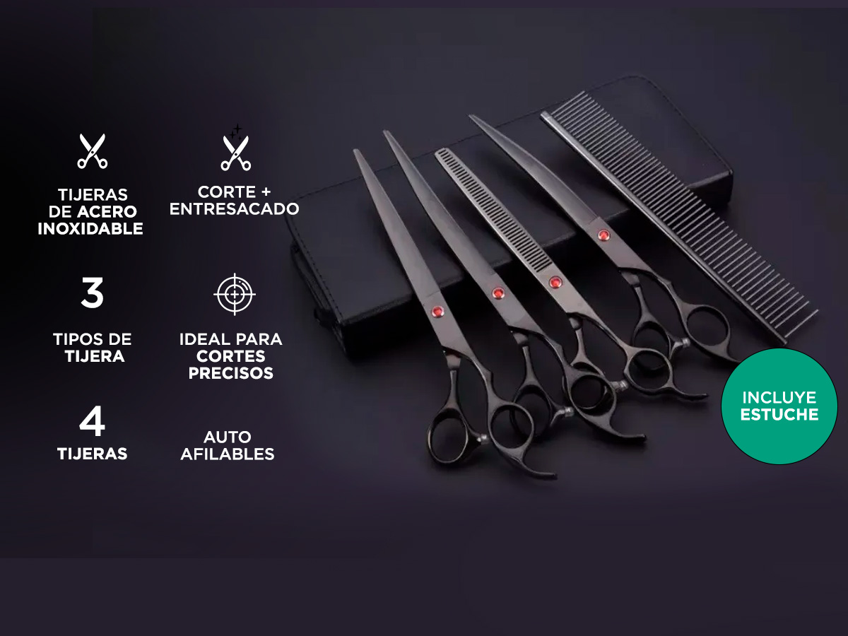 - Set de 4 Tijeras Para Peluquería Canina Profesionales